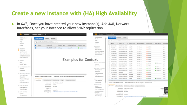 Provide a pre-checklist for AWS region selection, device types, and network prerequisites.Streamline HA Setup: